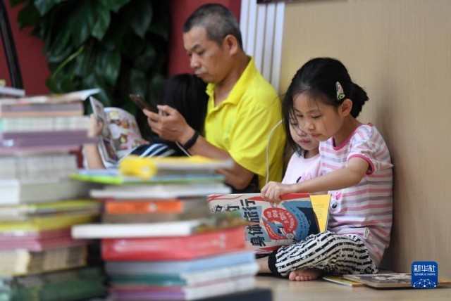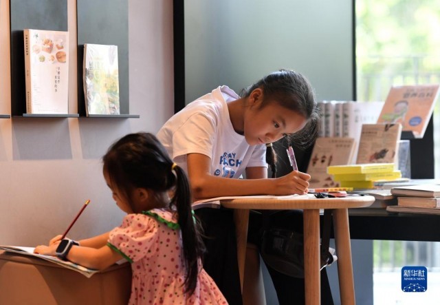 進入暑假,廣西南寧市不少學生來到書店閱讀,享受書香假期。