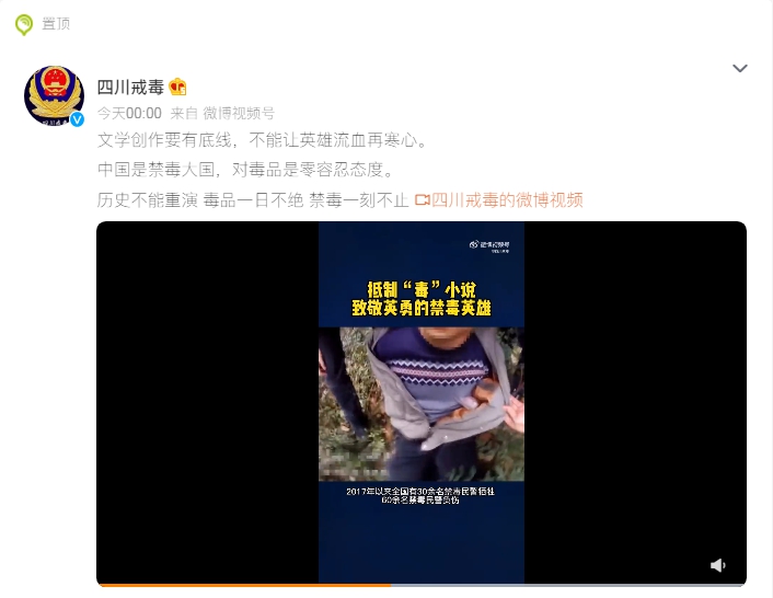 四川省戒毒管理局在此次發(fā)聲中表示,中國是禁毒大國,是世界上列管毒品最多、管制最嚴的國家,對毒品是零容忍態(tài)度。面對暴戾的毒販,緝毒警察每一次抓捕都以命相搏。聲明強調,抵制“毒”小說,致敬英勇的禁毒英雄。
