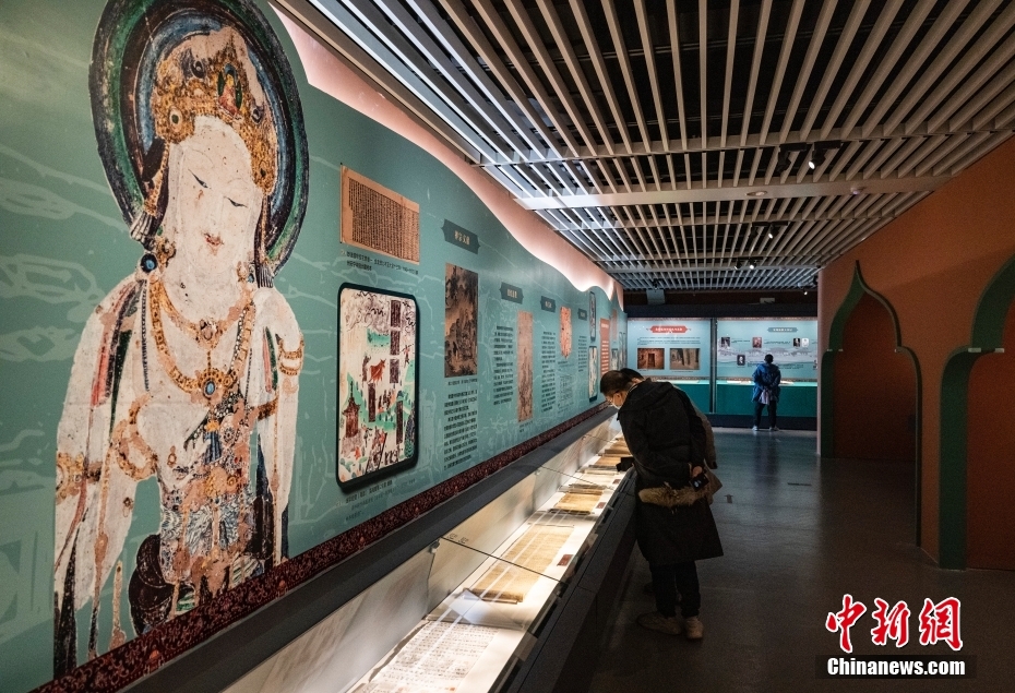 圖為觀眾在“敦煌遺書(shū)”展區(qū)內(nèi)參觀。 中新社記者 侯宇 攝