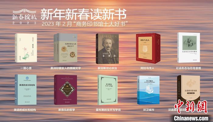 中新網(wǎng)北京2月9日電 (記者 應(yīng)妮)商務(wù)印書館“新年新春讀新書·月度新書發(fā)布會”8日晚在線舉辦,發(fā)布了2023年2月“商務(wù)印書館十大好書”,分別為《一瓣心香——葉嘉瑩詩詞論稿》《美洲印第安人的圖畫文字》《愛因斯坦論政治》《阿拉烏戈人》《社會形態(tài)與符號景觀》《英語的成長和結(jié)構(gòu)》《新音樂的哲學(xué)》《霍布斯的生平與學(xué)說》《環(huán)衛(wèi)城市——從美國殖民地時期直到現(xiàn)在》《漢語新詞語詞典(2000-2020)》。