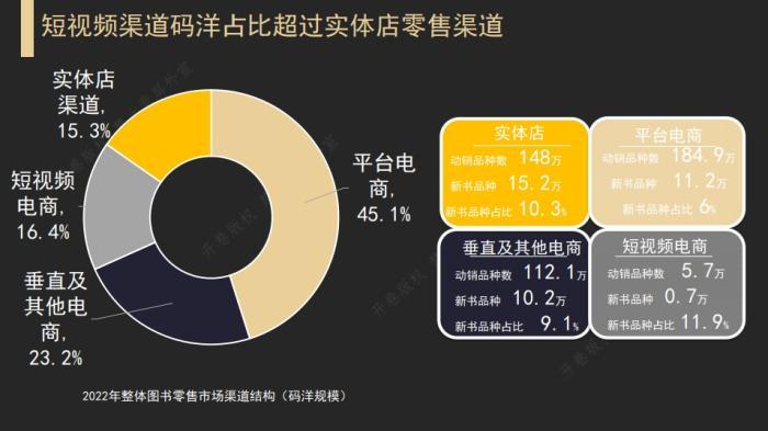 比如,從四個渠道零售市場中動銷圖書的上市時間來看,短視頻電商中2022年上市新書無論是品種占比還是碼洋占比,均高于其他渠道。