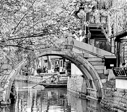 如他在“寺殿篇”之《紹興大禹陵及蘭亭》一文中,將禹陵與自然環(huán)境的因應(yīng)關(guān)系交代得極盡輕靈簡(jiǎn)約,余韻不盡:“大禹陵西向,面臨禹池,正對(duì)亭山,禹池外二小山分列左右,而會(huì)稽山環(huán)抱其后。”同篇之《江西貴溪的道教建筑》一文中的天師府則“位于鎮(zhèn)西端,門(mén)臨上清宮前街,面沂溪(又名上清溪),對(duì)琴瑟嶺,北倚西花山,豫樟成林,陰翳蔽日”。而《揚(yáng)州伊斯蘭教建筑》中的普哈丁墓園“位于江蘇揚(yáng)州東關(guān)城外運(yùn)河?xùn)|岸的土崗上。崗上蔥郁的古木與參差的亭閣相掩映,望之蔚然如畫(huà)。它點(diǎn)綴在運(yùn)河的沿岸,舟行其下,十分令人注目”。
