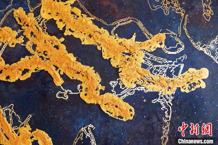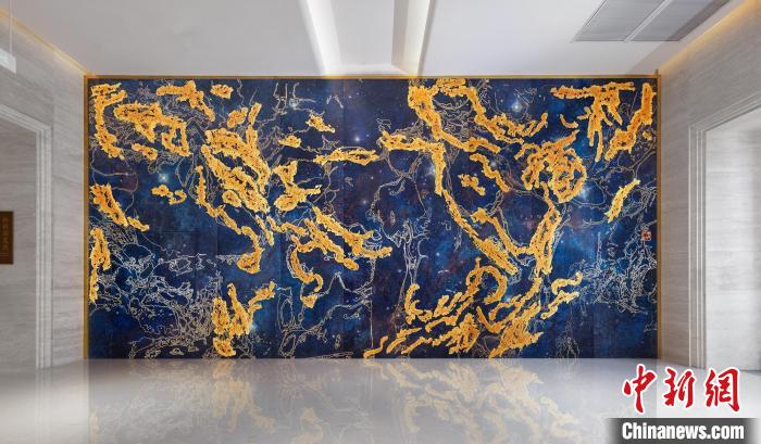 記者了解到,這幅熔銅壁畫采用國(guó)家級(jí)非遺銅雕技藝,結(jié)合熔銅藝術(shù)、釉彩著色等創(chuàng)新技藝制作而成,從設(shè)計(jì)、制作、誕生,全程歷時(shí)一年,難度很大。壁畫以朱炳仁手繪的星空“云水墨”制作,用大面積深藍(lán)宇宙為底,采用熔銅藝術(shù)構(gòu)成繁星點(diǎn)點(diǎn)。