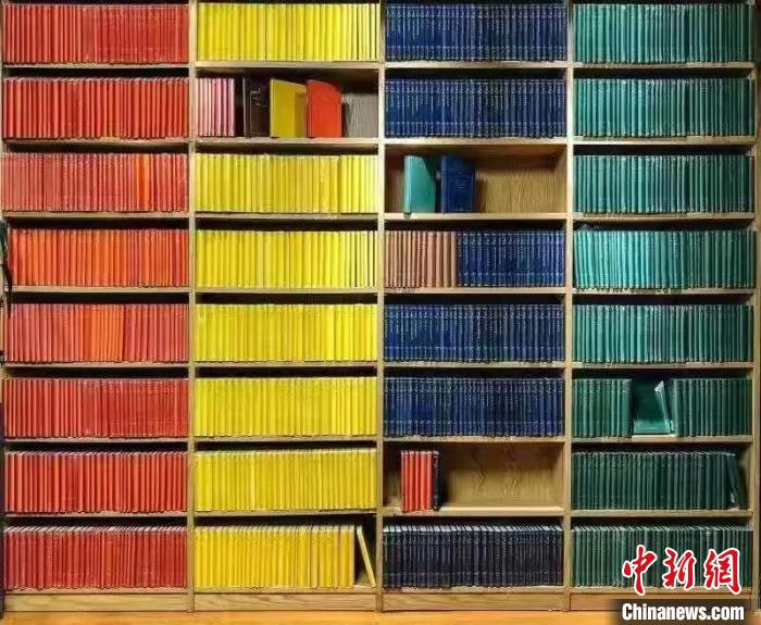 由“漢譯世界學術(shù)名著叢書”組成的“彩虹墻”。  商務(wù)印書館供圖