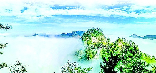 然而,天水石門山的饋贈還不止這些。由于石門山地理位置特殊,宜人的氣候經(jīng)常會造就氣勢磅礴的浩瀚云海。云海平靜時(shí),云霧便在半山腰停住腳步。站在山巔遠(yuǎn)眺,只見腳底下半山腰白霧團(tuán)團(tuán),感覺自己在云山之巔,飄飄欲仙。“不知天上宮闕,今夕是何年?”此情此景,比畫更有靈氣,比詩更具意境。置身其中,感覺空氣都被浸潤得芳香四溢,令人心曠神怡。