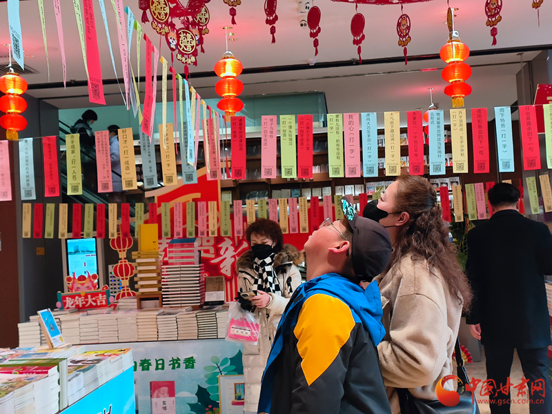 中國甘肅網(wǎng)2月21日訊 (西北角·中國甘肅網(wǎng)記者 張?zhí)m琴)這個周六就是元宵節(jié),從今天開始,甘肅省新華書店在全省各門店開展的猜燈謎活動拉開了鬧元宵系列活動的序幕,也將“書香潤隴原 文化過大年”系列活動推向高潮,進一步讓“進書店過大年”成為新時代年俗和龍年春節(jié)里一抹亮麗風景。