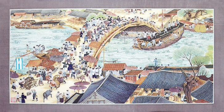 《清明上河圖》大量采用硬撥、浮 雕 撥、剪貼、柳繡、抽絲、繪畫(huà)、打籽繡、編織等工藝。