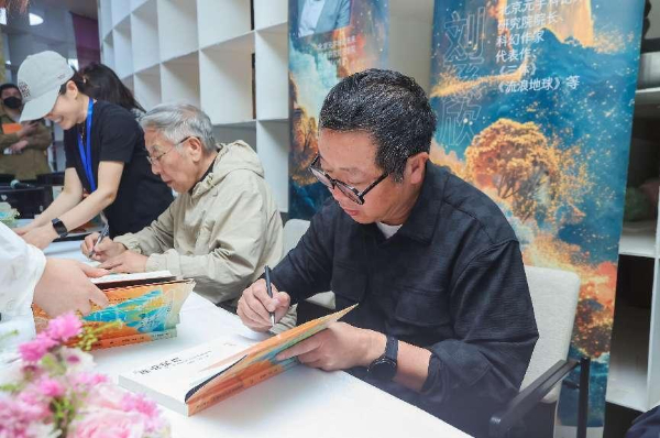 年會(huì)上還舉辦了“科幻中的故土情懷”圓桌論壇,由程婧波擔(dān)任主持人,董仁威、江波、甘偉康、石以、超俠、顧適、劉玉杰參加對(duì)話交流。當(dāng)晚在首鋼園•全民暢讀藝術(shù)書店舉行新書簽售活動(dòng),王晉康、劉慈欣、董仁威、超俠、寶樹、江波、程婧波、顧適等本書8位作者代表全書56位中國科幻重磅作家簽售,現(xiàn)場(chǎng)讀者數(shù)百人參加,快手新知平臺(tái)50余萬人在線圍觀,刷新了科幻圖書出版簽售少有的火爆場(chǎng)面。