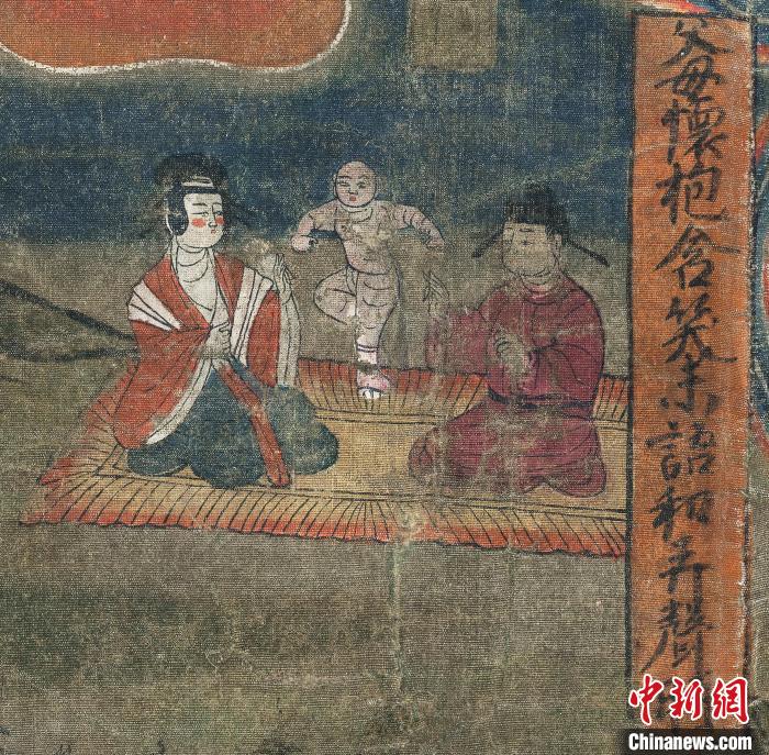 圖為“報(bào)父母恩重經(jīng)變絹畫”中的“父母懷抱含笑未語(yǔ)和弄聲時(shí)”的畫面。(資料圖)甘肅省博物館供圖