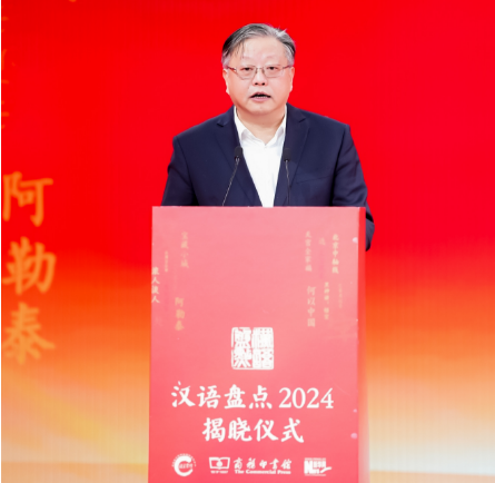 商務印書館黨委書記、執(zhí)行董事顧青在“漢語盤點2024”年度字詞揭曉儀式上致辭。新華網(wǎng) 發(fā)