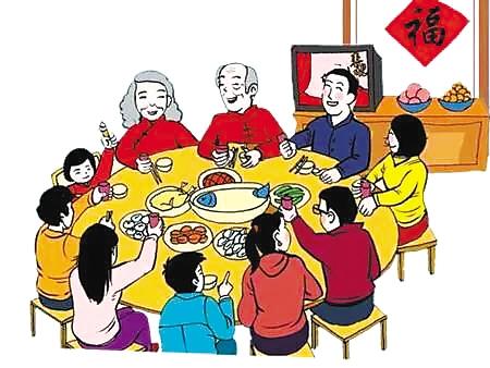 人們辛苦了整整一年,除夕晚上全家老小定要團(tuán)圓,在家中吃團(tuán)圓餃子。餃子形如元寶,取“招財(cái)進(jìn)寶”之意,餃子餡中可以包進(jìn)硬幣和干果,以寄托人們對(duì)新年的一種祈盼。這頓年夜飯可以從傍晚一直吃到天黑,席間人們多彼此祝愿的話(huà)語(yǔ),充滿(mǎn)歡樂(lè)溫馨氣氛。