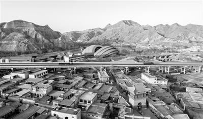 河口古鎮(zhèn)與“黃河巨蛋”相映生輝。 本版圖片除署名外,均為記者田蹊 攝