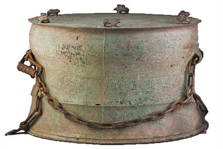 銅鼓是西南地區(qū)常見(jiàn)的青銅禮器,同時(shí)可盛裝食物,也有一定的實(shí)用價(jià)值。