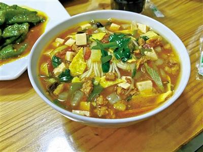 澆頭很“田園”,勾芡不厚不薄,恰到好處,故而色澤鮮亮;用料實(shí)在,五花肉丁、豆腐丁、洋芋丁、胡蘿卜丁、黃花菜、黑木耳品種豐富,一絲不茍;面條半個(gè)筷頭粗細(xì),微黃半透,勻稱(chēng)筋道,久泡不爛;佐以熗拌水蘿卜、蒜泥茄子,真的是香濃滑爽,吃完令人毛孔大張,微微汗溢。