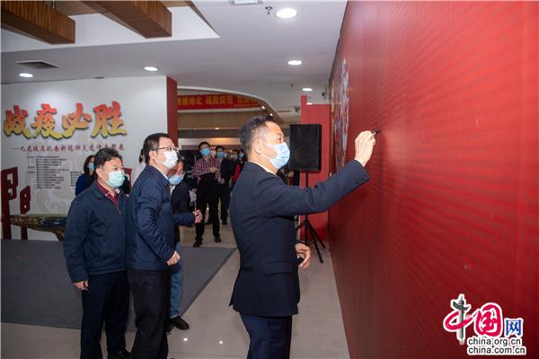 2020年4月17日上午,由中共重慶市九龍坡區(qū)委宣傳部、重慶市九龍坡區(qū)文化和旅游發(fā)展委員會、重慶市九龍坡區(qū)衛(wèi)生健康委員會、重慶市九龍坡區(qū)地方志編撰中心聯合主辦,重慶巴人博物館、重慶市九龍坡區(qū)非物質文化遺產保護中心承辦的“戰(zhàn)疫必勝——九龍坡區(qū)抗擊新冠肺炎疫情專題展”在重慶巴人博物館正式開展,市文化和旅游發(fā)展委員會副主任幸軍、九龍坡區(qū)委常委、宣傳部部長顏朝華、九龍坡區(qū)政府副區(qū)長趙文明、市文化和旅游發(fā)展委員會非物質文化遺產處處長嚴小紅、文物保護與考古處處長熊子華、博物館與社會文物處處長王發(fā)榮出席開展儀式。