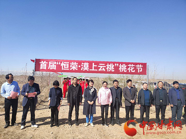 中國甘肅網(wǎng)4月25日訊(本網(wǎng)記者 張振國 文/圖)人間四月芳菲盡,大漠桃花始盛開。4月25日,騰格里沙漠邊緣、涼州大漠桃花即將開放之際,由甘肅恒榮綠洲治沙科技有限公司舉辦的首屆“恒榮·漠上云桃”桃花節(jié)在涼州區(qū)紅水河西該公司生態(tài)經(jīng)濟林產(chǎn)業(yè)化經(jīng)營試驗基地“恒榮桃園”開幕。