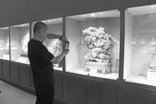 近日,游客正在臨洮甘肅洮河石文化博覽園景區(qū)觀賞千奇百怪的洮河石和古生物化石等。