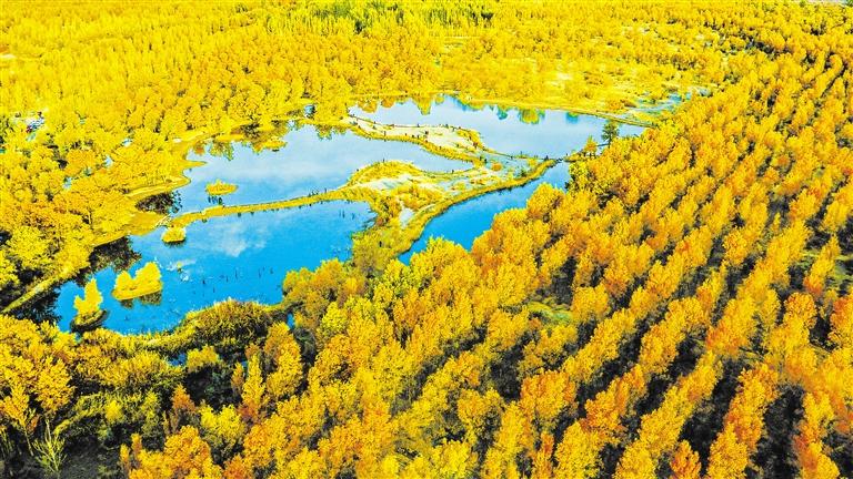 經過春風的滋潤、夏雨的洗禮后,在秋天的風一遍遍的吹拂下,胡楊林便在不知不覺中換了容顏。