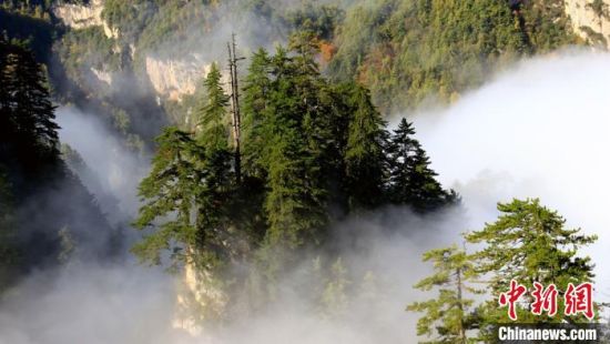 圖為險(xiǎn)峻山峰間云霧繚繞?!●R天云 攝