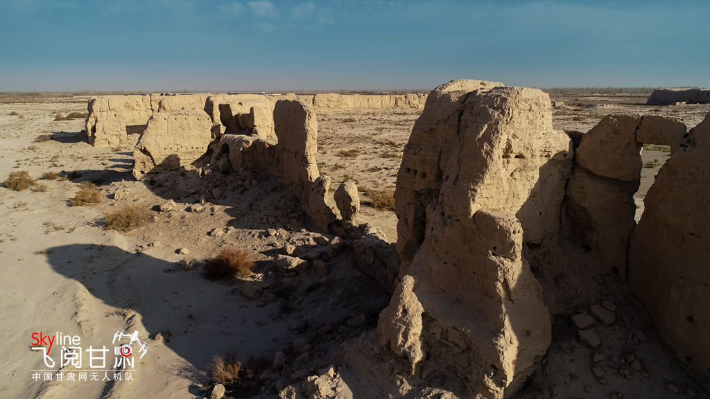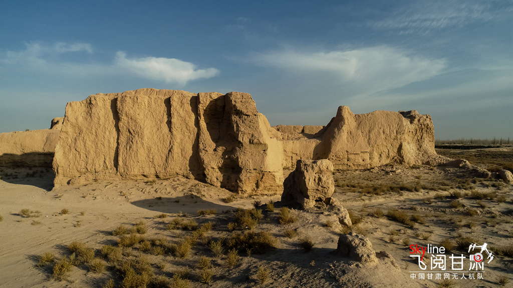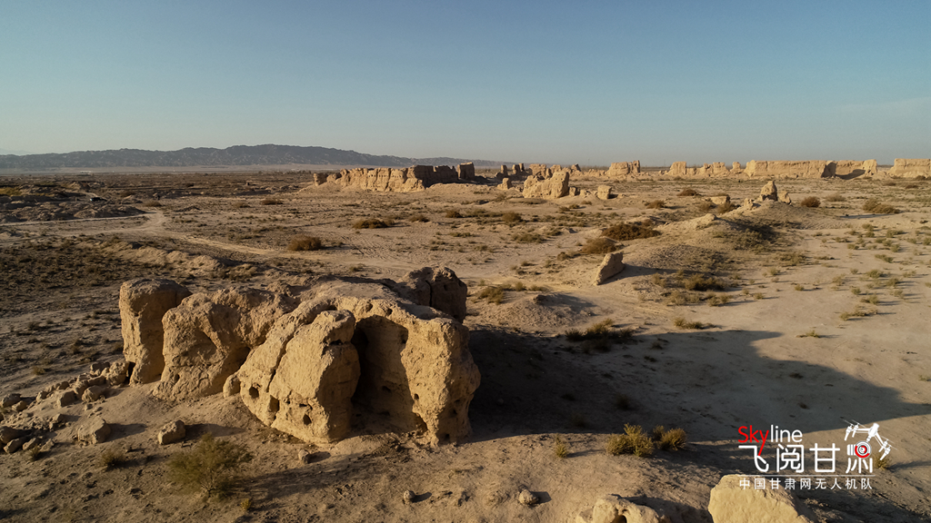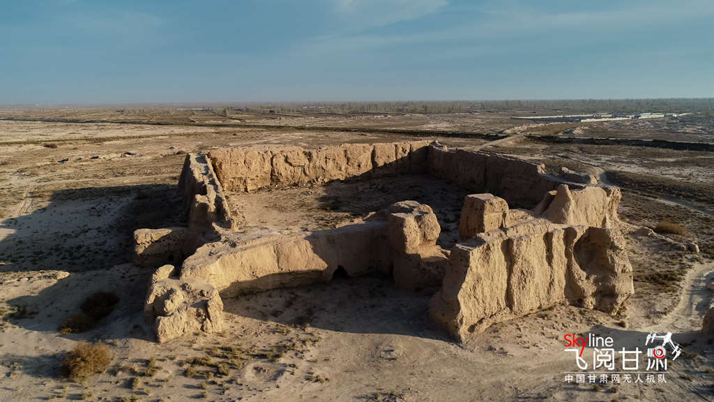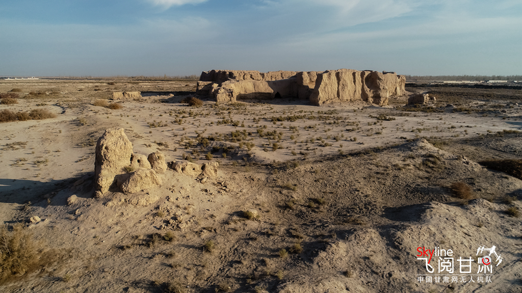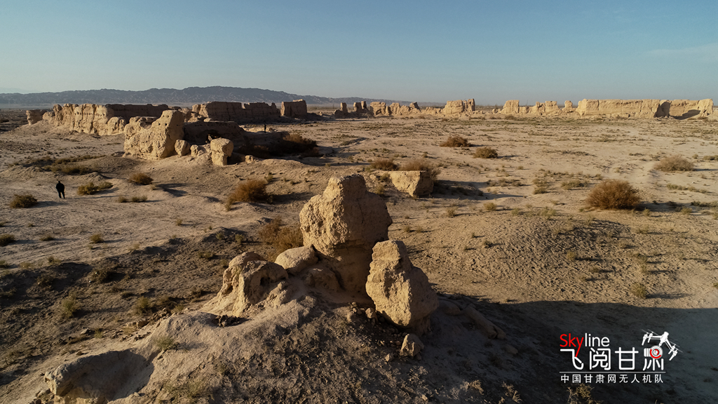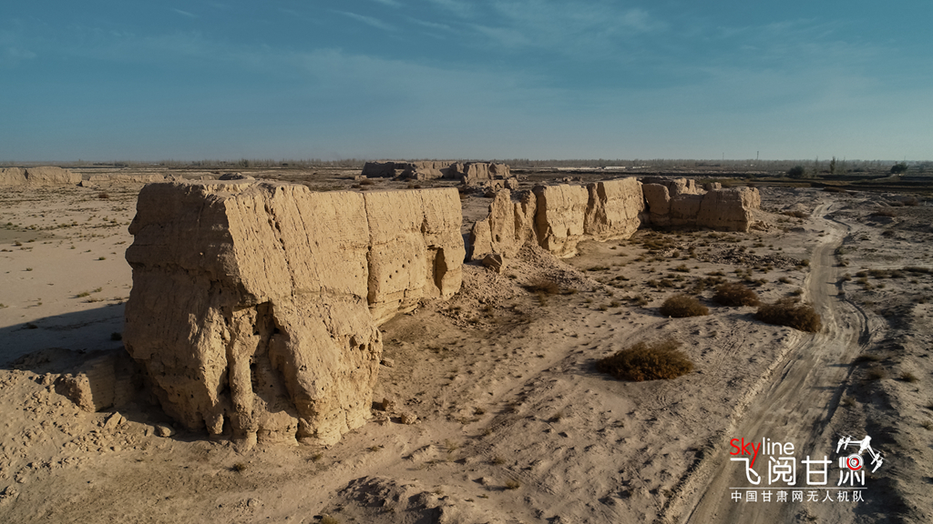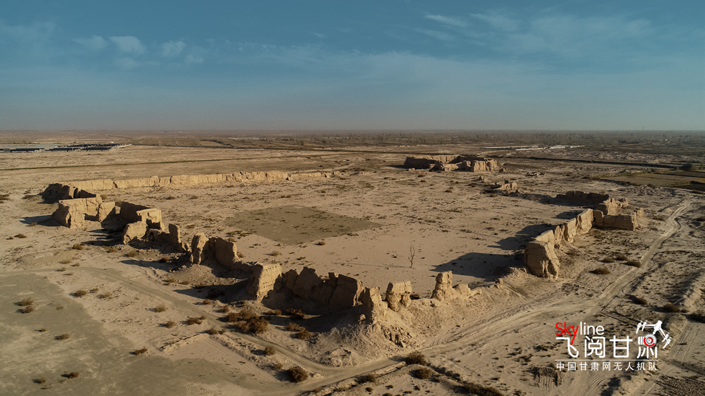 在酒泉瓜州縣南岔鎮(zhèn)的戈壁深處,六工城的殘?jiān)珨啾谠跉q月的滄桑里屹立了2000多年,從空中俯瞰,至今依然能看清晰輪廓。
