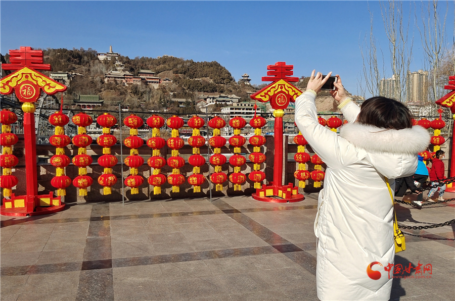 中國(guó)紅更配中國(guó)年,2月3日,記者在蘭州中山橋看到,中山橋廣場(chǎng)完成了節(jié)日亮化,火紅的燈籠搭配春天的裝飾,讓百年鐵橋在喜慶中迎接新春,吸引游客前來打卡拍照。