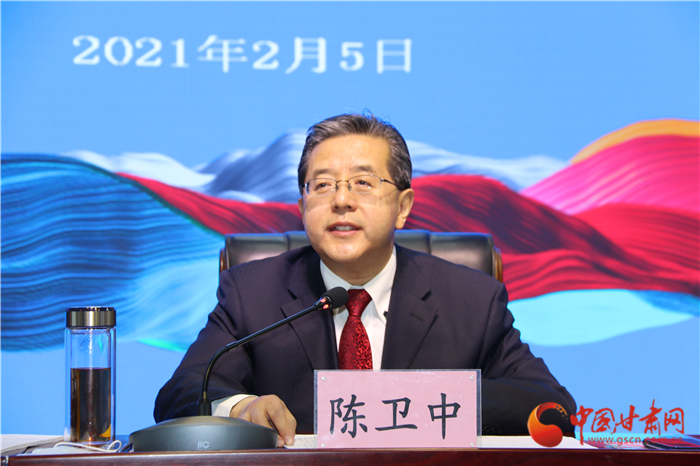 中國(guó)甘肅網(wǎng)2月5日訊 (本網(wǎng)記者 張?zhí)m琴 文/圖)2月5日上午,2021年全省文化和旅游局長(zhǎng)視頻會(huì)議在省會(huì)蘭州召開。與往年不同的是,這次會(huì)議貫徹落實(shí)省委、省政府的要求,蘭州以外的13個(gè)市州以視頻會(huì)議形式參會(huì)。整個(gè)會(huì)議簡(jiǎn)潔、務(wù)實(shí)、高效,旨在學(xué)習(xí)貫徹全國(guó)宣傳部長(zhǎng)會(huì)議、全國(guó)文化和旅游廳局長(zhǎng)會(huì)議、省委十三屆十三次全會(huì)暨省委經(jīng)濟(jì)工作會(huì)議、省“兩會(huì)”和全省宣傳部長(zhǎng)會(huì)議精神,總結(jié)2020年主要工作,安排2021年重點(diǎn)任務(wù)。甘肅省委宣傳部副部長(zhǎng),省文旅廳黨組書記、廳長(zhǎng)陳衛(wèi)中在會(huì)上講話,向全省“文旅鐵軍”發(fā)起號(hào)召,“干字當(dāng)頭”的決心引發(fā)全場(chǎng)熱烈反響。