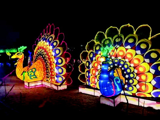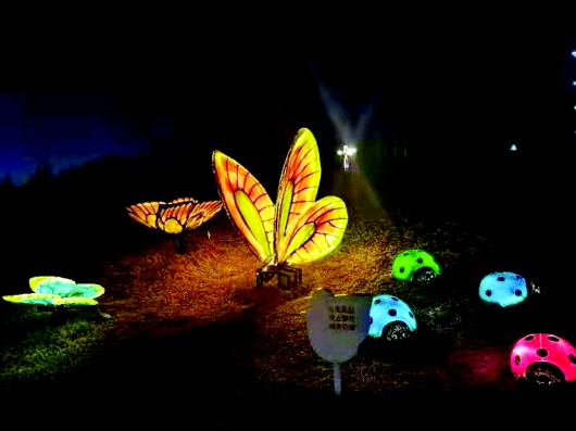 花燈競(jìng)起,五夜齊開。連日來,市區(qū)金嶺公園夜晚流光溢彩,一組組色彩艷麗、造型精美、構(gòu)思巧妙、寓意吉祥的大型花燈將公園裝扮得五彩繽紛、喜氣洋洋。燈的海洋,夜的霓裳,造型各異的花燈惹人注目,吸引了眾多市民前來觀賞,也給即將到來的元宵佳節(jié)帶來濃濃的喜慶氣氛。