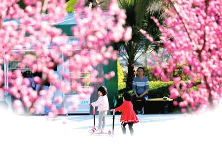 開(kāi)學(xué)前夕,孩子們?cè)诹G花明、青草萌芽的市區(qū)濱江濕地公園里擁抱春色,告別寒假。映襯著孩子們活潑的身影,玉蘭、紫葉李、杏花、櫻花盡情綻放,到處一派春意盎然,透著勃勃生機(jī)。記者 冉創(chuàng)昌 攝影報(bào)道