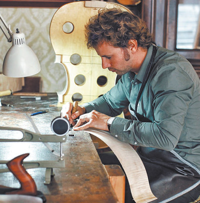 徜徉在克雷莫納街頭,提琴雕塑、制作室櫥窗、小提琴音樂會海報隨處可見。在克雷莫納主教座堂正北側(cè),有一家不大的提琴工作室,店主是33歲的瓦萊里奧·費隆。年紀(jì)雖輕,費隆已斬獲意大利提琴制作比賽最佳小提琴獎、中提琴獎、大提琴獎等許多獎項。