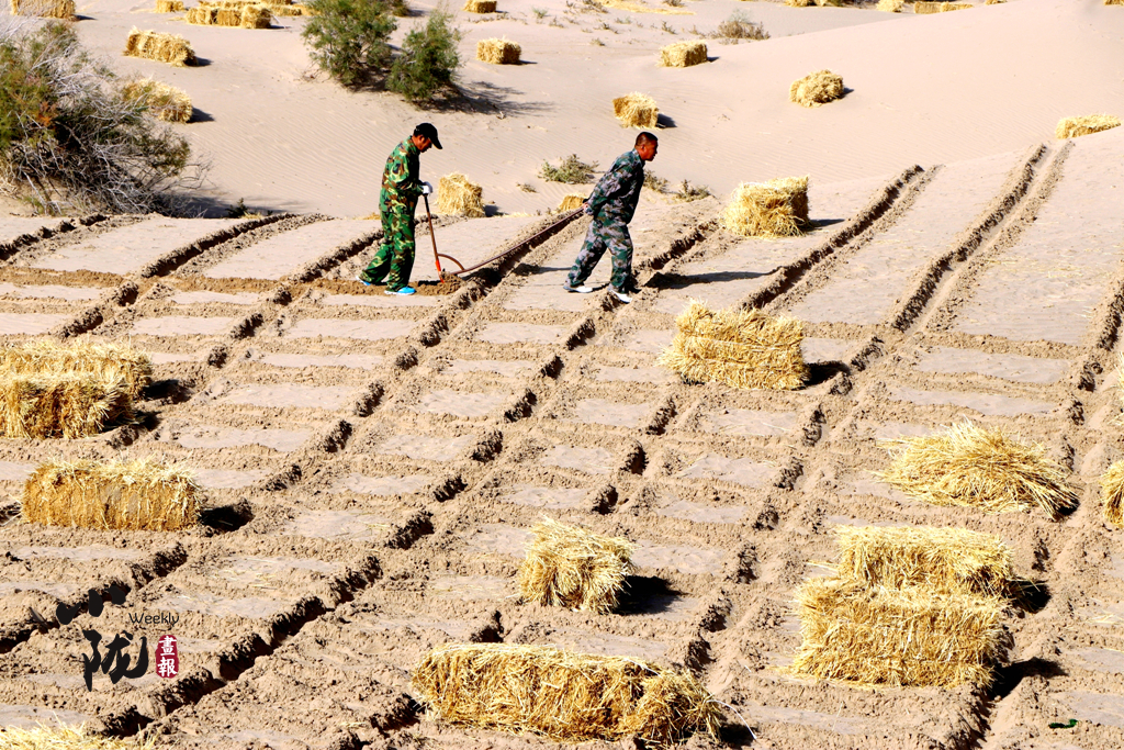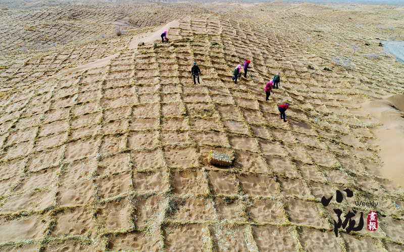他們帶著干糧、扛著工具,長(zhǎng)期披星戴月地在沙漠邊緣地帶壓沙種樹,并創(chuàng)造性地探索出了“民勤模式”。