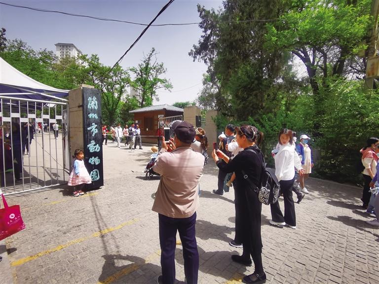 “我要和動(dòng)物園的大門(mén)合影” “快來(lái)給我和‘蘭州市動(dòng)物園’的大牌子拍張照”……5月7日10時(shí)許,前往蘭州市動(dòng)物園游玩的市民絡(luò)繹不絕,大門(mén)口懸掛著的略顯斑駁的黑底綠字的“蘭州市動(dòng)物園”的門(mén)牌,仿佛是最能觸動(dòng)人們記憶的“坐標(biāo)點(diǎn)”,大家排隊(duì)再和它照張相成為進(jìn)園的固定儀式。