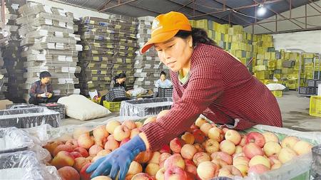 莊浪縣萬泉鎮(zhèn)的蔬果保鮮庫里,工人將存放的蘋果打包發(fā)往外地市場(chǎng)。