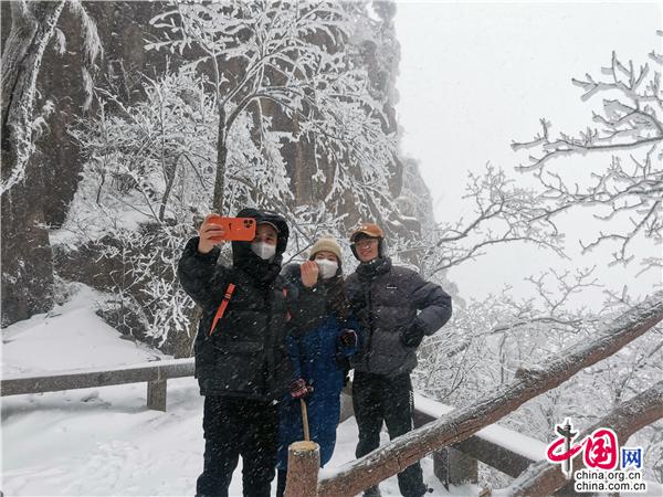 “哇! 好漂亮啊!”2月17日,安徽黃山風景區(qū)再次迎降春雪,驚羨慕名前來賞雪的游客。