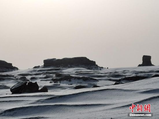 俗話說“春雪貴如油”,被稱為“中國最干旱的地方之一”的甘肅敦煌大漠落雪是一件十分稀罕的事兒。潔白的雪花漫天飛舞,千姿百態(tài)的雅丹在皚皚白雪的映襯下,愈發(fā)顯得栩栩如生。