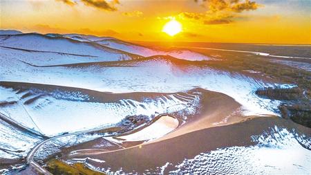 雪后初霽 敦煌鳴沙山月牙泉景區(qū)景色迷人