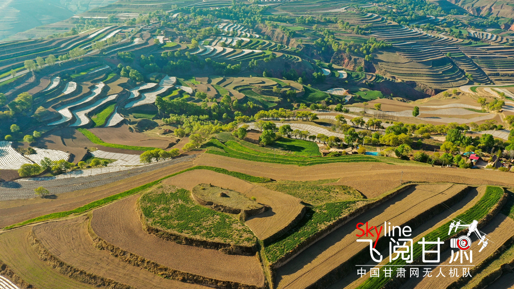 初夏時(shí)節(jié),一場雨后的定西市安定區(qū)石泉鄉(xiāng)3000畝標(biāo)準(zhǔn)化農(nóng)田和5萬畝設(shè)施梯田,青山環(huán)抱、線條分明,鄉(xiāng)村點(diǎn)綴其間,在不同的光線下呈現(xiàn)出不同色彩,美如畫卷。