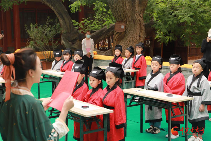 活動(dòng)二,“開筆啟蒙 詩禮少年”開筆禮活動(dòng)成功舉辦。孔子曰:“不學(xué)禮,無以立”,“開筆禮”古稱“破蒙”,為人生“四禮”之一,也是少兒開始識字習(xí)禮的一種啟蒙教育形式,寄托了對孩子成長的美好企盼。少年智則國智,少年強(qiáng)則國強(qiáng),在文廟舉辦“開筆禮”,就是為了傳承中華優(yōu)秀傳統(tǒng),增強(qiáng)學(xué)子文化自信,激發(fā)學(xué)習(xí)熱情,為中華民族的偉大復(fù)興刻苦學(xué)習(xí),努力奮斗。