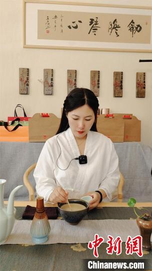 張艷珍演示點(diǎn)茶。張艷珍 供圖