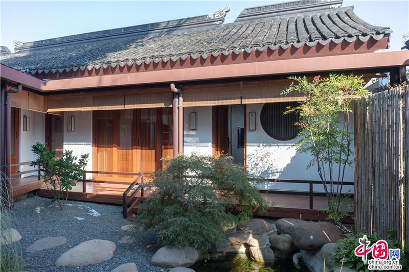 “一見面就產(chǎn)生一種要在這里覓房安居的奇怪心愿。”走進(jìn)青瓦白墻圍合的宅院,儼然像打開了一幅充滿人文意趣的雅致生活圖景畫。一處竹柵,幾處閑樸,池魚貪吃著天上云絮。靜謐的庭院里尋得萬般自在。