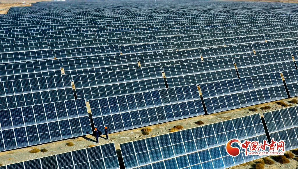 11月17日,甘肅省張掖市甘州區(qū)南灘龍?jiān)垂夥l(fā)電場(chǎng),綠色能源正源源不斷地輸入電網(wǎng)。