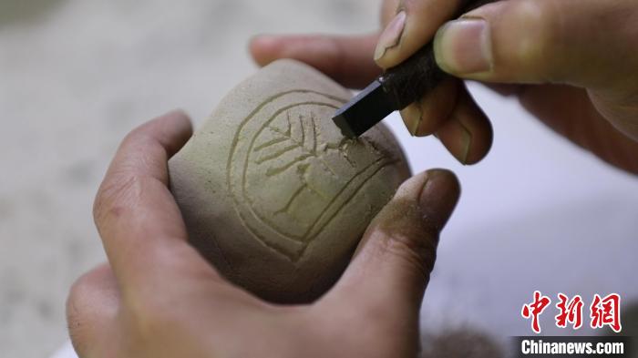 柴燒陶印的制作過程,結(jié)合了書法繪畫、手工雕塑等技藝。巨野縣委宣傳部供圖