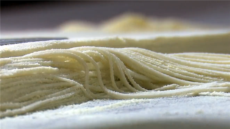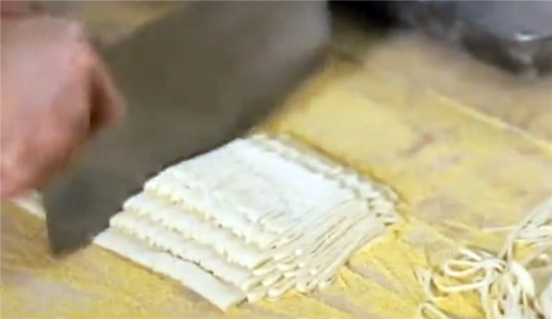 揉面最為關(guān)鍵,揉好后便是切了,靈臺方言稱之為“犁”,講究眼到、心到、手到,寬窄相等,粗細合適。
