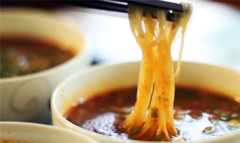 盛一碗細面,再澆些許酸湯,酸中帶辣、柔軟耐嚼、湯香撲鼻,開胃爽口、色香味俱佳。特別是夏季時分,一碗酸湯面絕對是開胃醒腦又提神的不二之選。