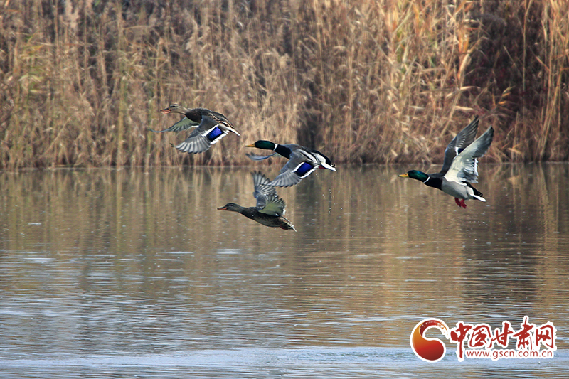 冬日的平?jīng)鍪谐缧趴h,無(wú)人機(jī)鏡頭下的唐帽山山巒疊嶂、俊秀奇威,高大的樹木直插云霄,在云霧繚繞中宛若仙境;汭水河畔,成群的綠頭鴨時(shí)而佇立枝頭,時(shí)而輕舞飛翔,時(shí)而戲水覓食。