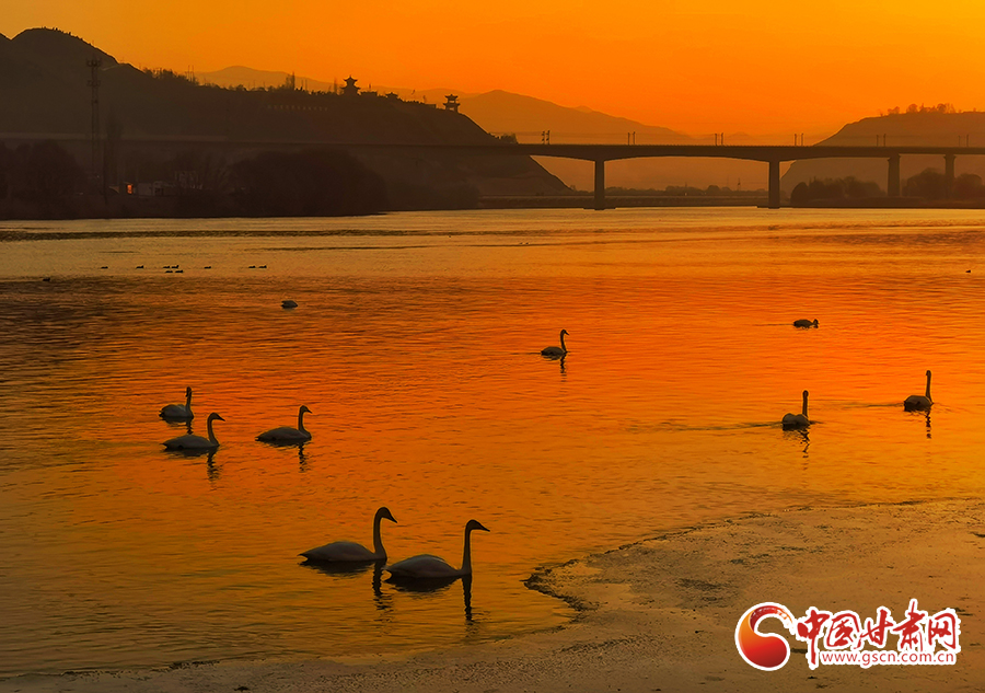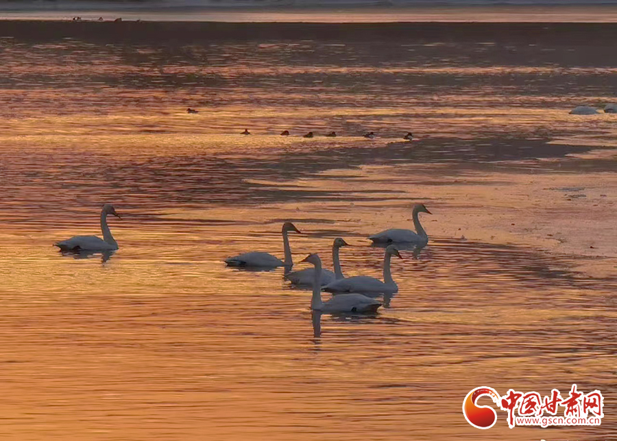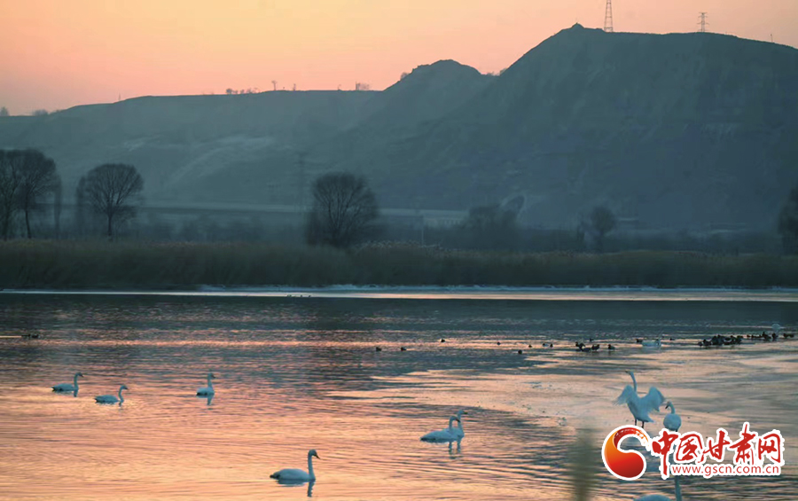 近日,位于蘭州市西固區(qū)達(dá)川鎮(zhèn)的三江口天鵝灘,陸續(xù)飛來(lái)天鵝越冬。在一平如鏡的水域,它們或安靜地棲息,或在水中暢游。