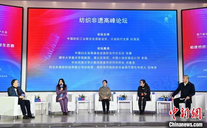 中國婦女發(fā)展基金會(huì)國際合作辦主任張蕾,清華大學(xué)美術(shù)學(xué)院教授、中國十佳時(shí)裝設(shè)計(jì)師李薇,中央民族大學(xué)少數(shù)民族服飾研究所所長祁春英,河北永亮紡織品有限公司總經(jīng)理、高陽民間染織技藝省級(jí)代表性傳承人田海濤等分享了各自在紡織非遺方面的實(shí)踐故事。