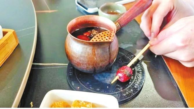“‘茶圣’陸羽的《茶經(jīng)·五之煮》記載,煮茶的時(shí)候會(huì)放蔥、姜、棗、橘皮、茱萸、薄荷等佐料,所以現(xiàn)在罐罐茶所添加的配料,如紅棗、枸杞、桂圓、葡萄干、菊花、冰糖等,其實(shí)就是最原始的煮茶法的延續(xù)。”唐陳虓說。