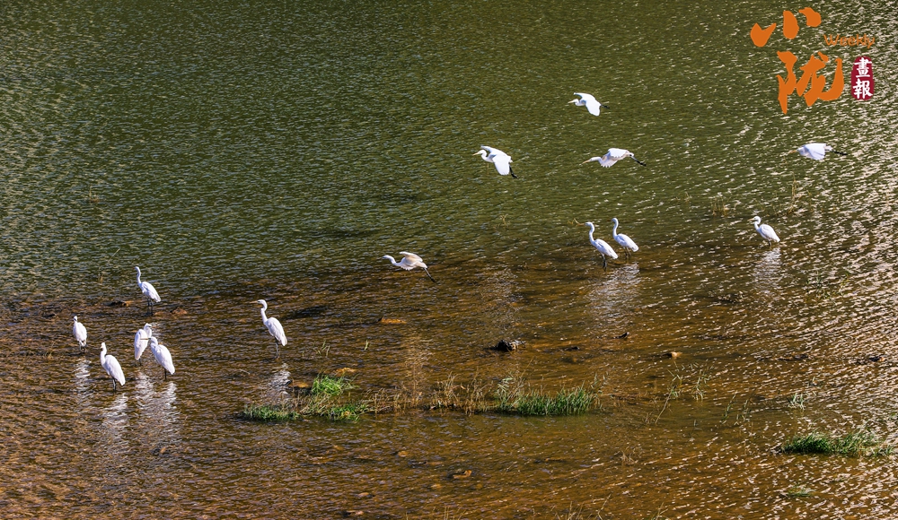 天藍、水清、田綠、樹青,成群的白鷺在子午嶺上方自由飛翔,時而在水面或河岸追逐嬉戲。
