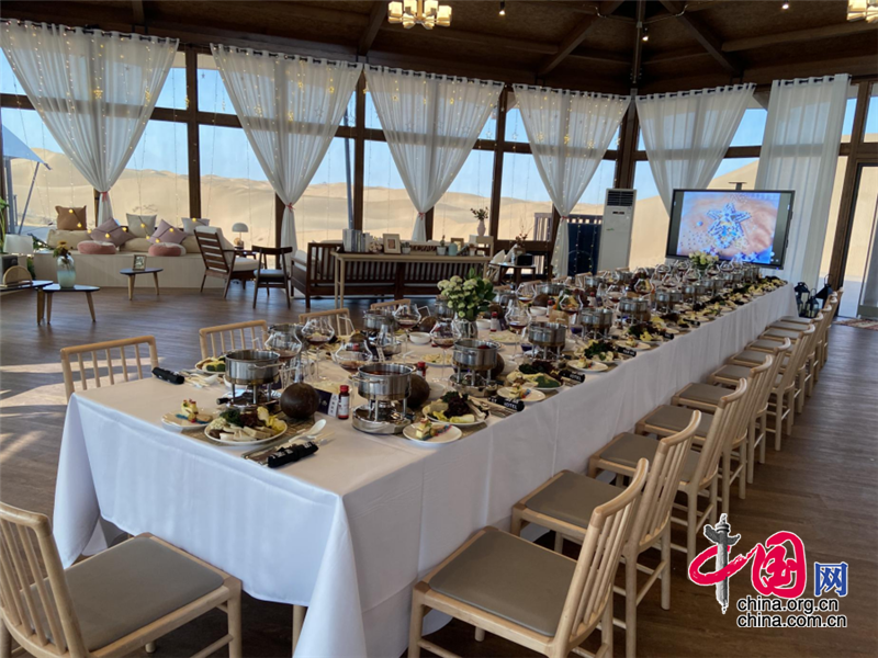 在星星酒店的360°全景餐廳、星空餐廳、沙漠美食城,感受寧夏灘羊肉與賀蘭山東麓葡萄美酒完美相遇的極致體驗,品味美食在舌尖、美景在眼前的愜意生活,還有特制下午茶、自助沙漠小火鍋可滿足游客的不同味蕾。