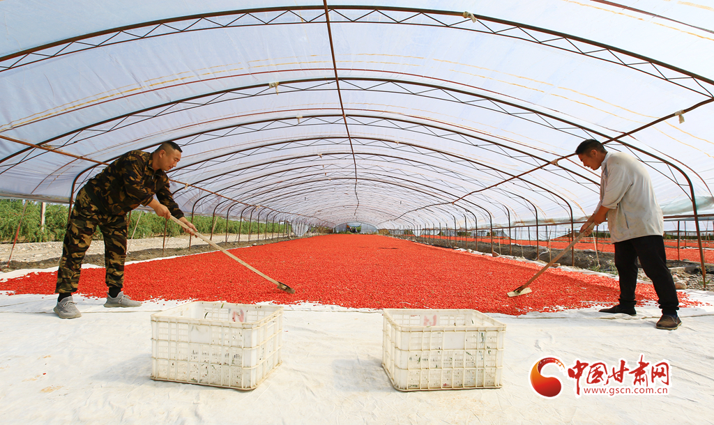 近日,嘉峪關(guān)市新城鎮(zhèn)一公司的1.89萬(wàn)畝頭茬枸杞迎來(lái)采收季,枸杞種植戶搶抓晴好天氣采摘、拉運(yùn)、晾曬枸杞,枸杞園內(nèi)外一派繁忙的豐收景象。